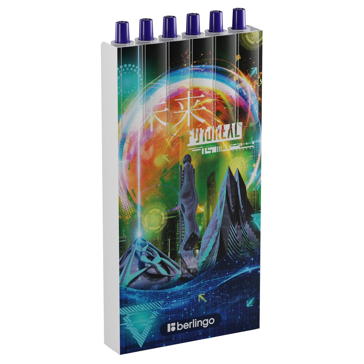 Ручка шариковая автоматическая Berlingo "Futureal" синяя, 0,7мм, грип, рисунок на корпусе,soft touch, 6шт., пластиковый пенал