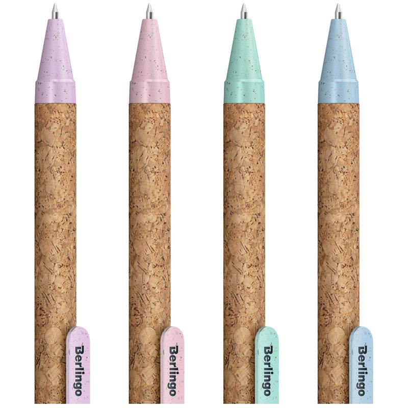 Ручка шариковая автоматическая Berlingo "Green Series" 0,7мм, синяя, корпус с пробковым покрытием