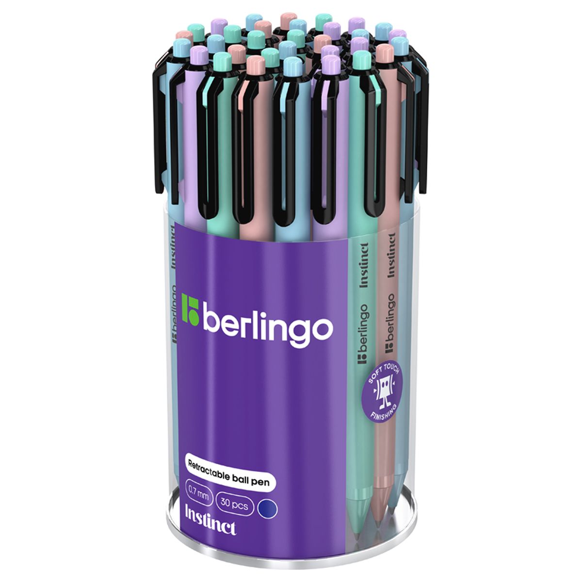 Ручка шариковая автоматическая Berlingo "Instinct" синяя, 0,7мм, корпус ассорти