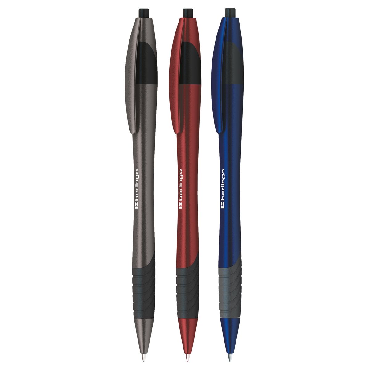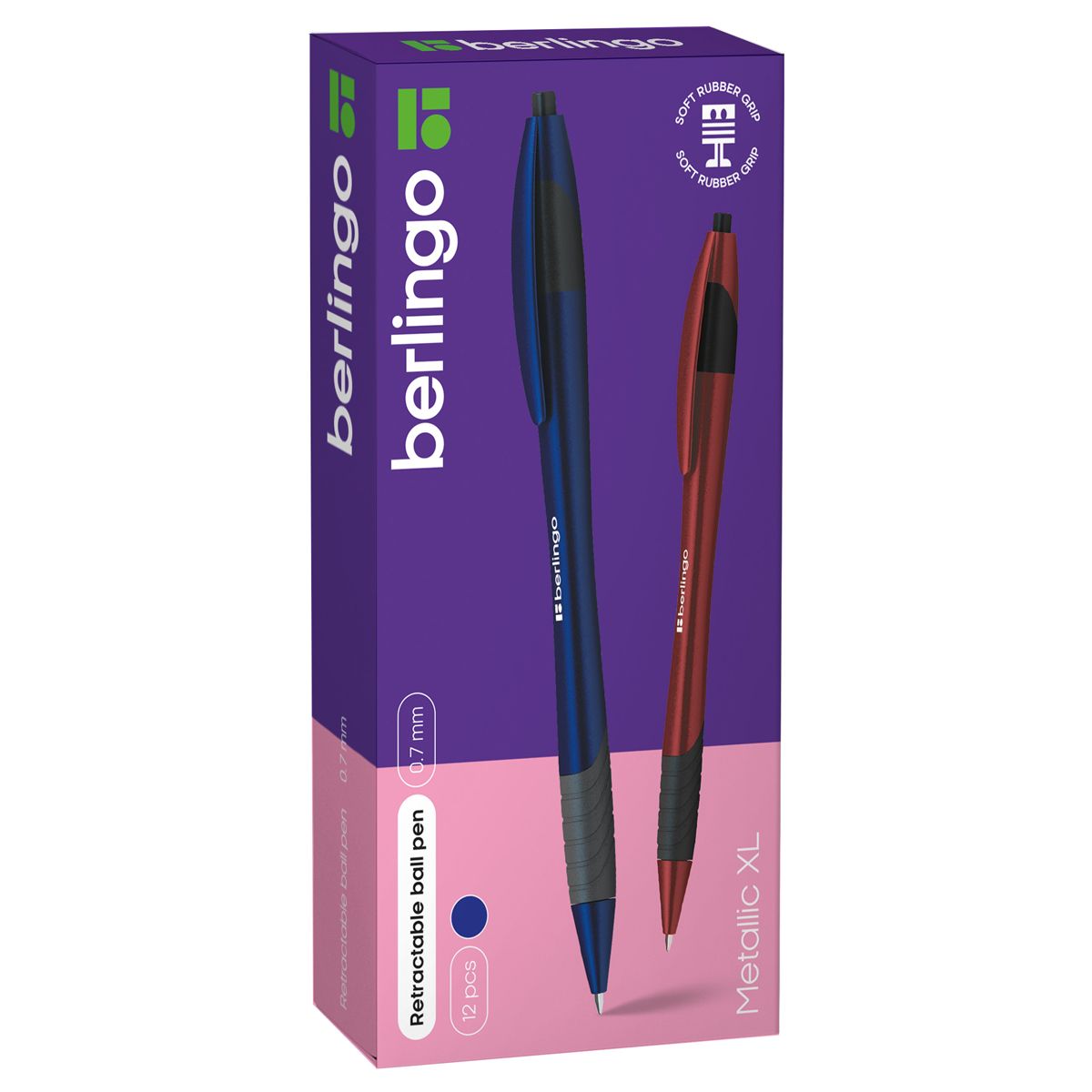Ручка шариковая автоматическая Berlingo "Metallic XL" синяя, 0,7мм, грип, корпус ассорти