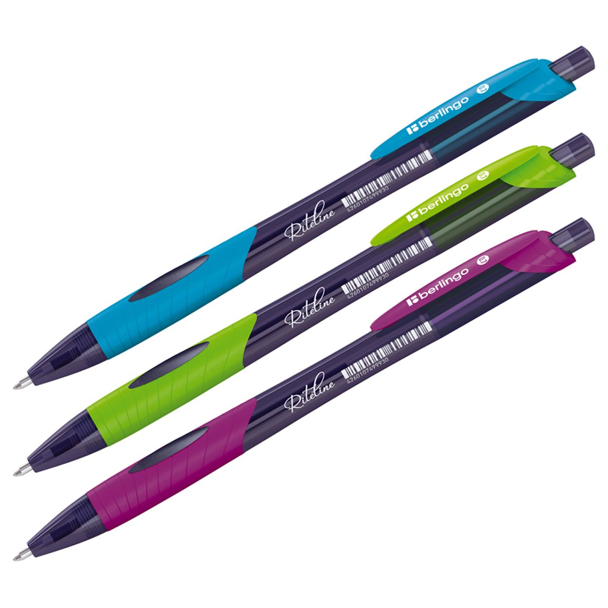 Ручка шариковая автоматическая Berlingo "Riteline" синяя, 0,7мм, грип, корпус ассорти