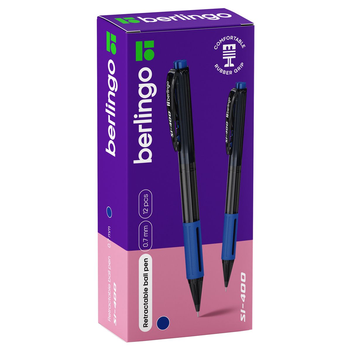 Ручка шариковая автоматическая Berlingo "SI-400" синяя, 0,7мм, грип