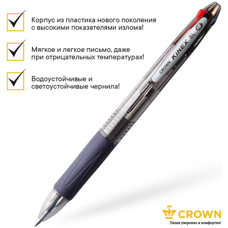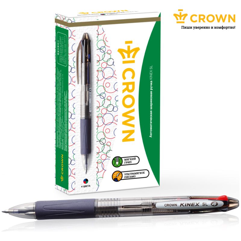 Ручка шариковая автоматическая Crown "Kinex Sl" 04цв., 0,7мм, грип