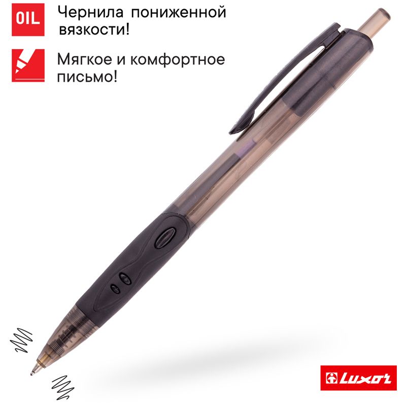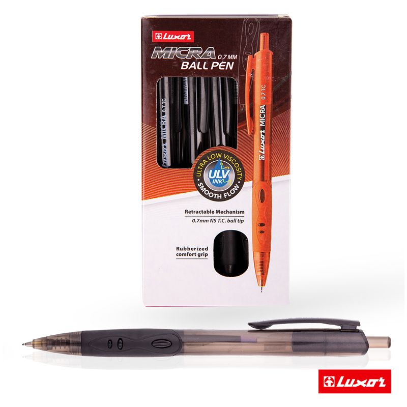 Ручка шариковая автоматическая Luxor "Micra" черная, 0,7мм, грип