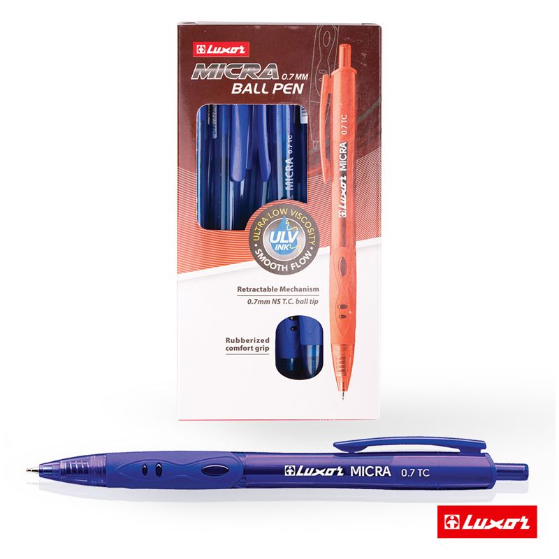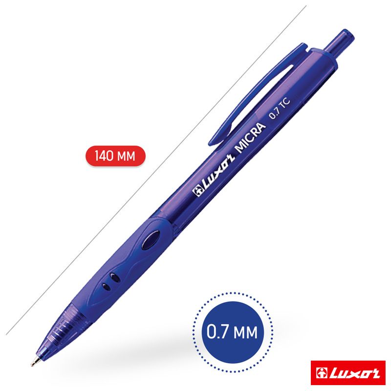 Ручка шариковая автоматическая Luxor "Micra" синяя, 0,7мм, грип
