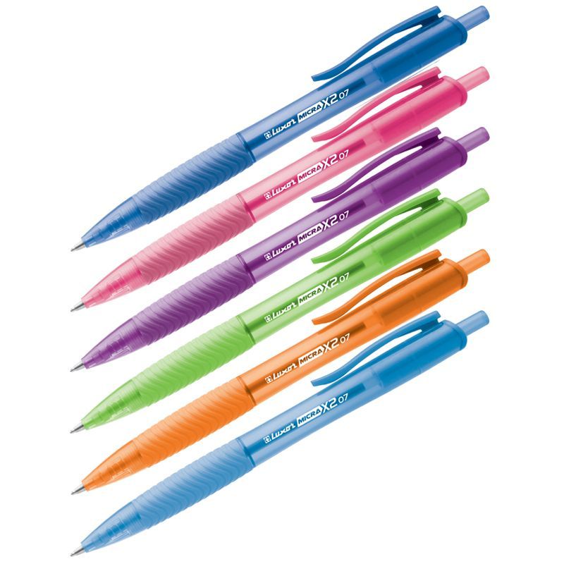 Ручка шариковая автоматическая Luxor "Micra X II" синяя, 0,7мм, грип, корпус ассорти