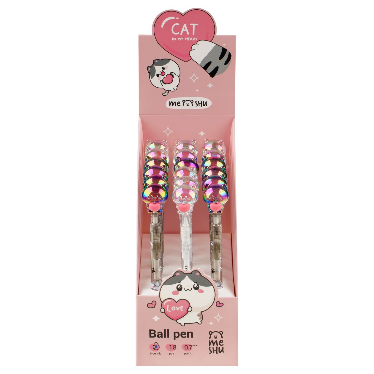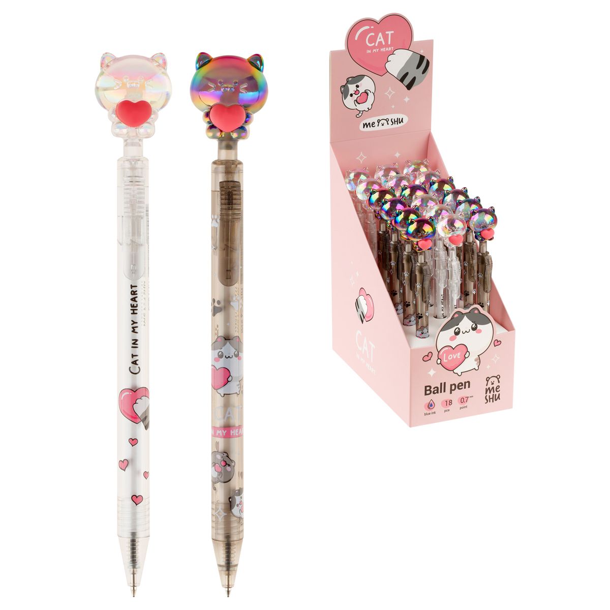 Ручка шариковая автоматическая MESHU "Cats Lovers" синяя, 0,7мм, корпус ассорти