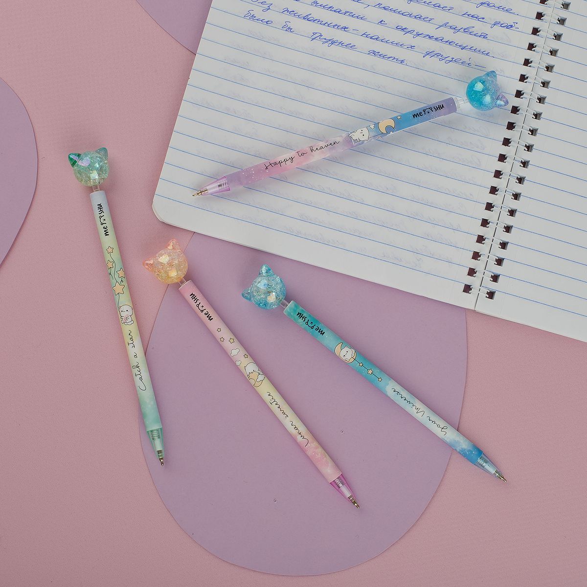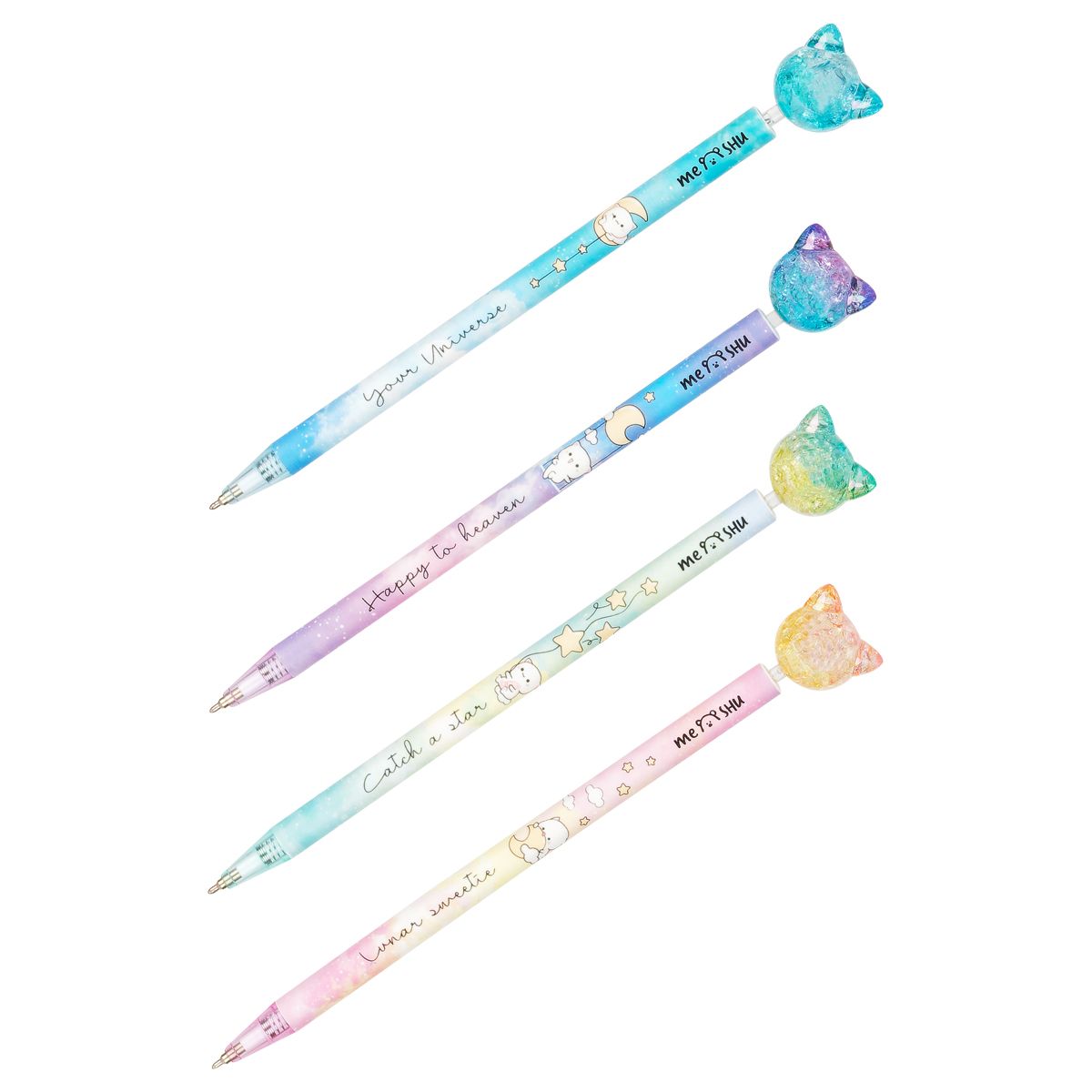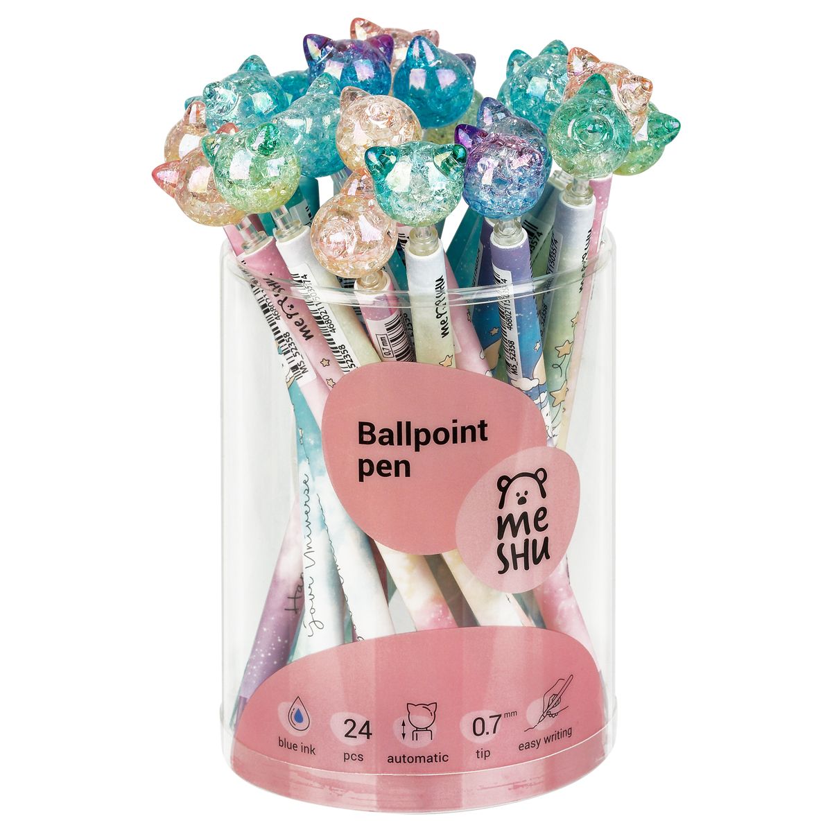Ручка шариковая автоматическая MESHU "Cute Cats" синяя, 0,7мм, корпус ассорти, с топпером