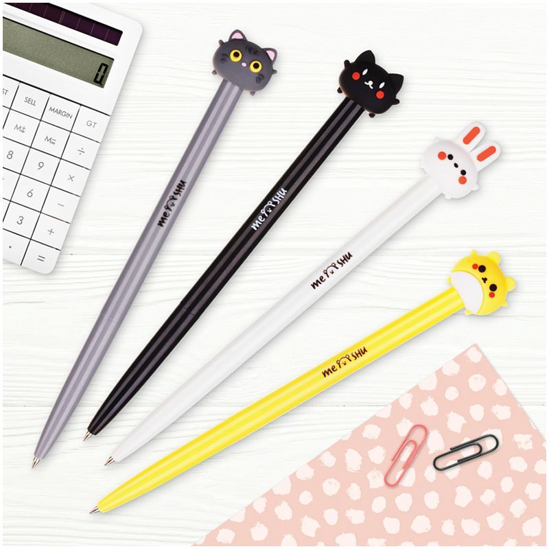 Ручка шариковая автоматическая MESHU "Cute Friends" синяя, с топпером