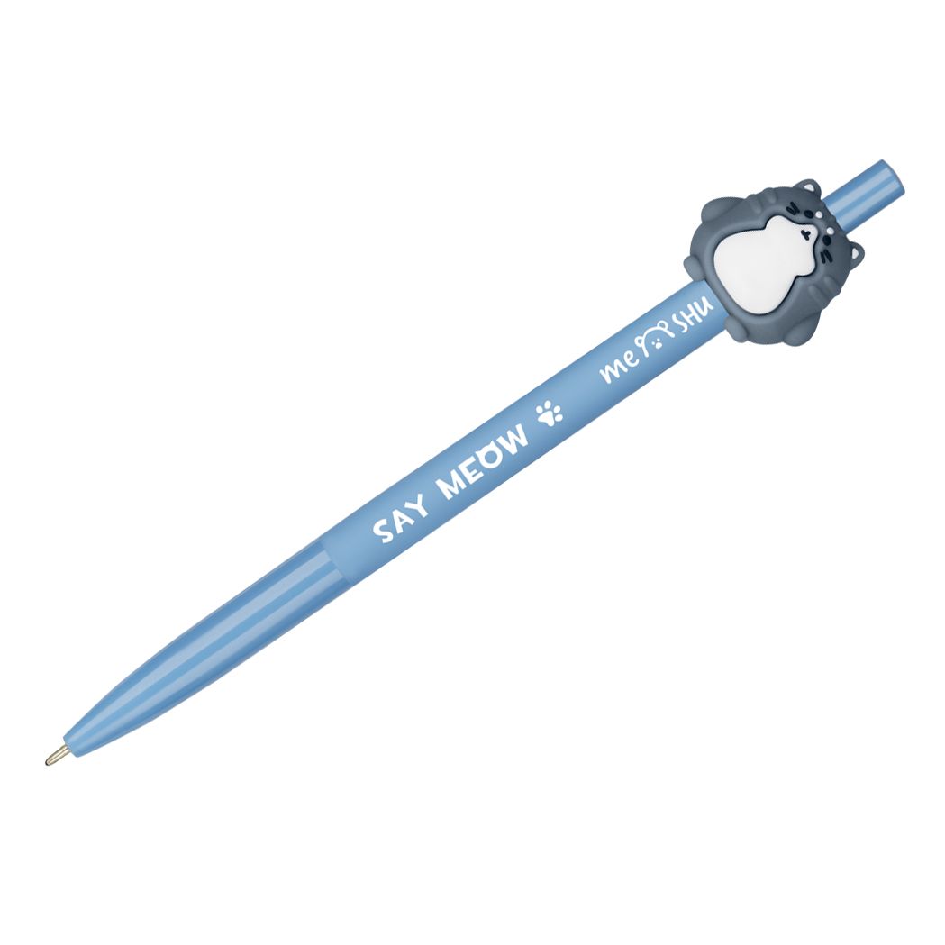 Ручка шариковая автоматическая MESHU "Fat cat" синяя, 0,7мм, корпус ассорти, с топпером