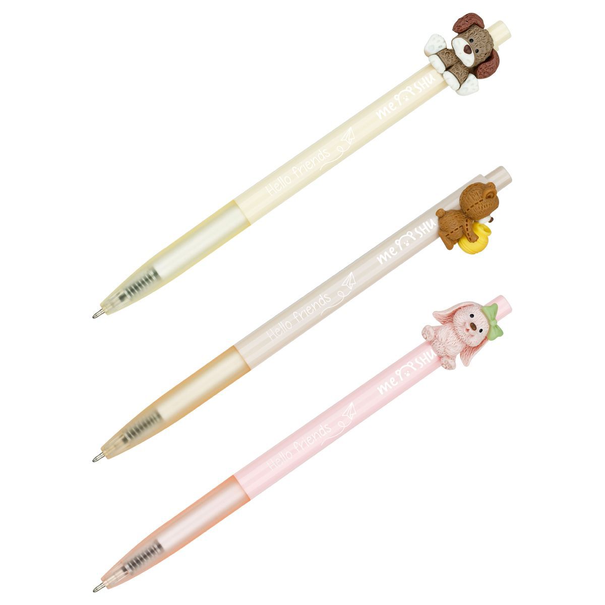 Ручка шариковая автоматическая MESHU "Funny friends" синяя, 0,7мм, корпус ассорти, с топпером