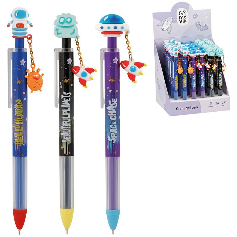 Ручка шариковая автоматическая MESHU "Space Journey" синяя, 0,5мм, грип, корпус ассорти, с топпером