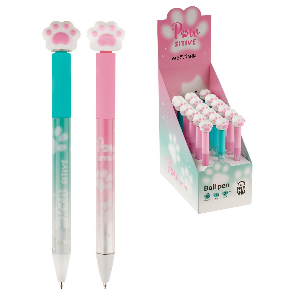 Ручка шариковая автоматическая MESHU "Spinner Paw" синяя, 0,7мм, корпус ассорти