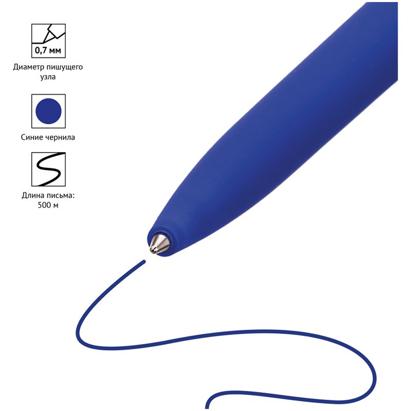 Ручка шариковая автоматическая OfficeSpace "Business" синяя, 0,7мм, синий антискол. корпус