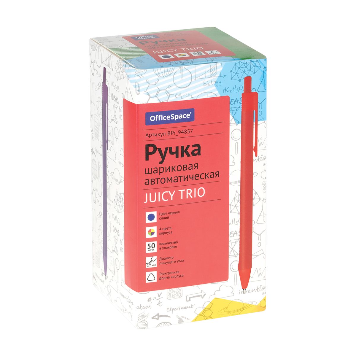 Ручка шариковая автоматическая OfficeSpace "Juicy Trio" синяя, 0,7мм, трехгранная, корпус ассорти