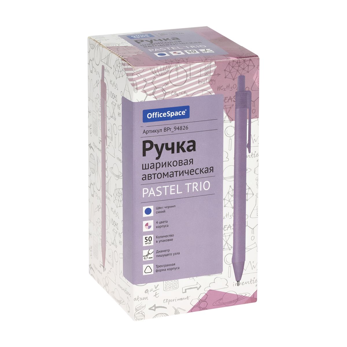 Ручка шариковая автоматическая OfficeSpace "Pastel Trio" синяя, 0,7мм, трехгранная, корпус ассорти