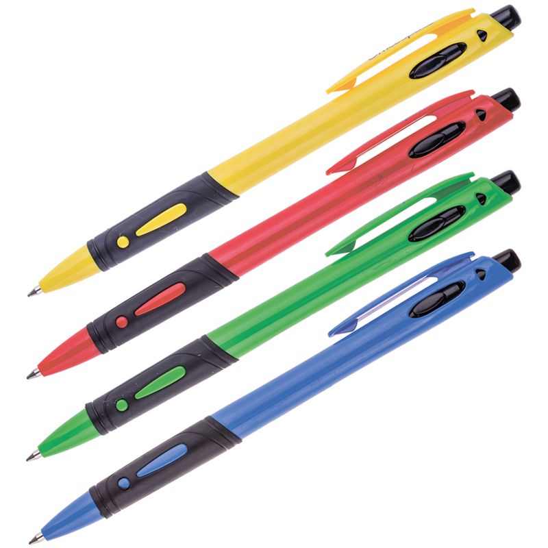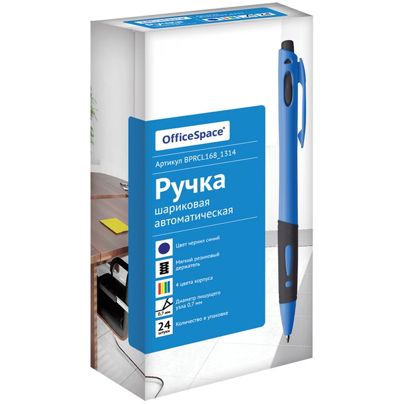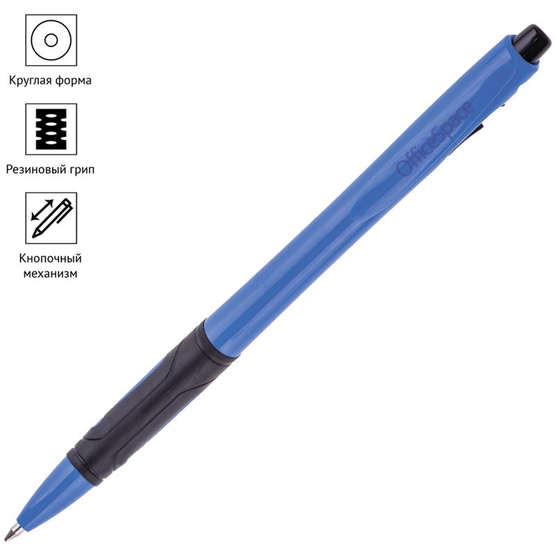 Ручка шариковая автоматическая OfficeSpace синяя, 0,7мм, грип, цветной корпус