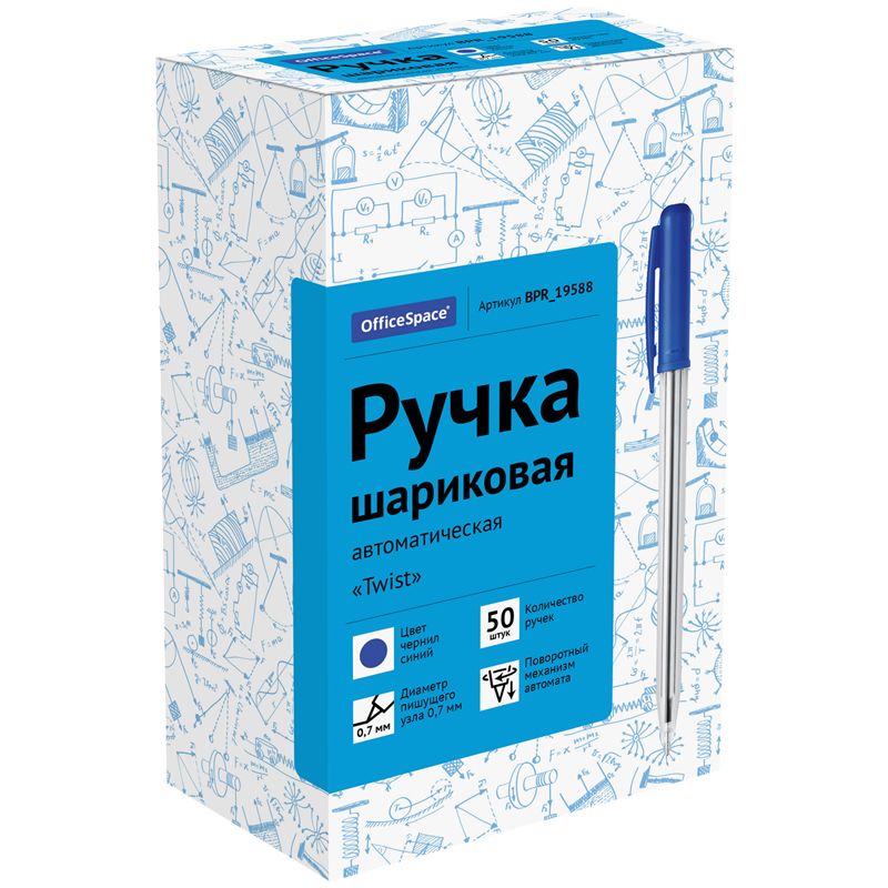 Ручка шариковая автоматическая OfficeSpace "Twist" синяя, 0,7мм, поворотный механизм