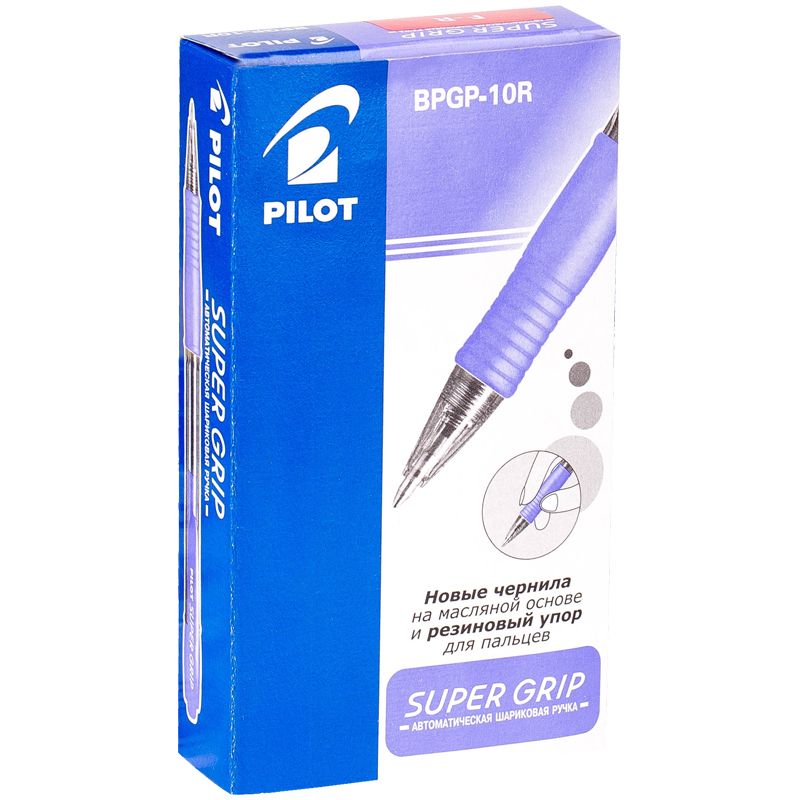 Ручка шариковая автоматическая Pilot "Super Grip" красная, 0,7мм, красный грип