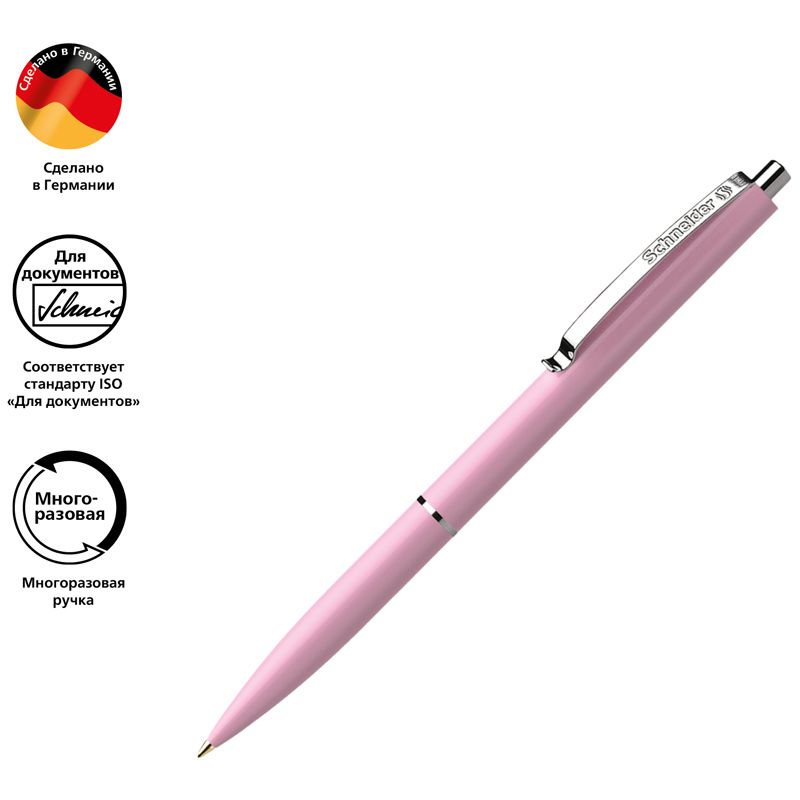 Изящная автоматическая шариковая ручка с прочным металлическим клипом. Длина непрерывной линии - до 2 000 метров. Быстросохнущие, свето- и водоустойчивые чернила соответствуют международному стандарту качества ISO 12757-2 и отлично подходят для заполнения и подписи документов. Для замены подходят стержни Schneider Office 765 и Express 775.