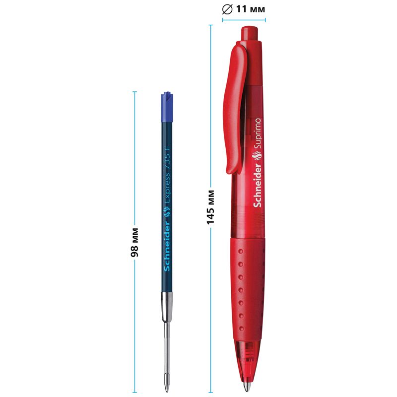 Ручка шариковая автоматическая Schneider "Suprimo" красная, 1,0мм, грип