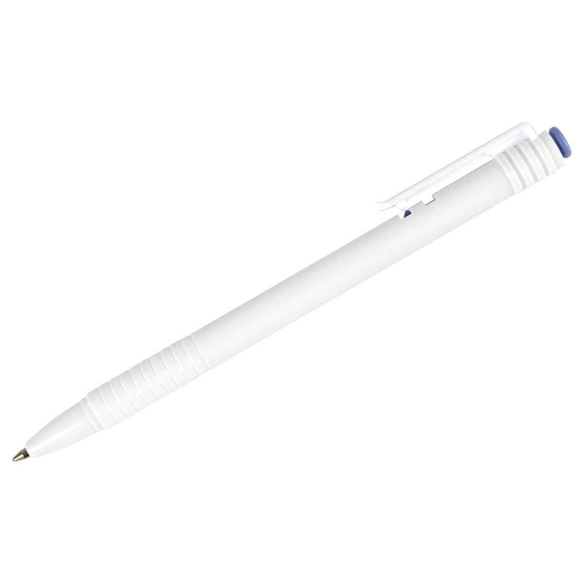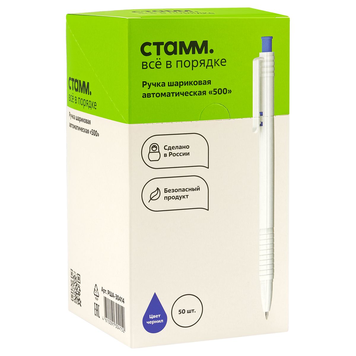 Ручка шариковая автоматическая СТАММ "500" синяя, 0,7мм, белый корпус
