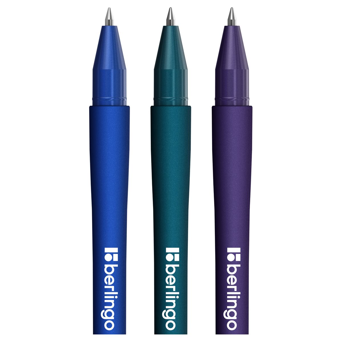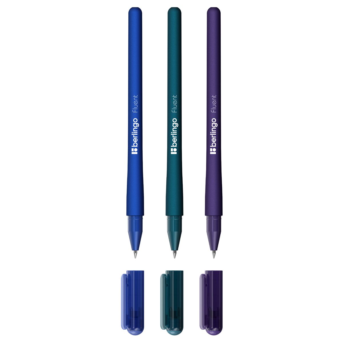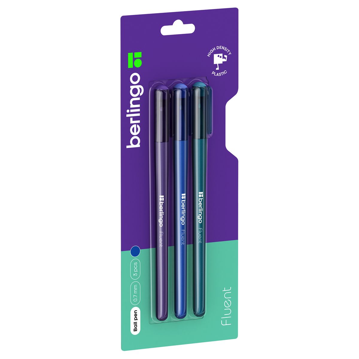 Ручка шариковая Berlingo "Fluent" синяя, 0,7мм, металлопласт., soft touch, 3шт., блистер