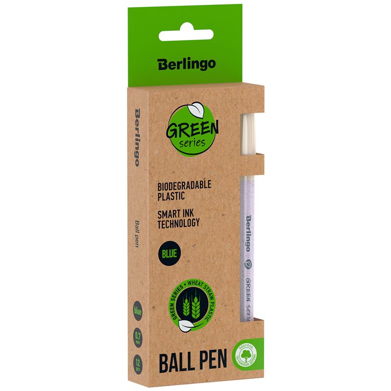 Ручка шариковая Berlingo "Green Series" 0,7мм, синяя, корпус ассорти