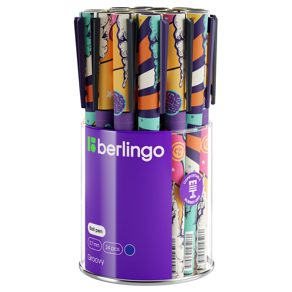 Ручка шариковая Berlingo "Groovy" синяя, 0,7мм, грип, рисунок на корпусе, soft-touch, ассорти