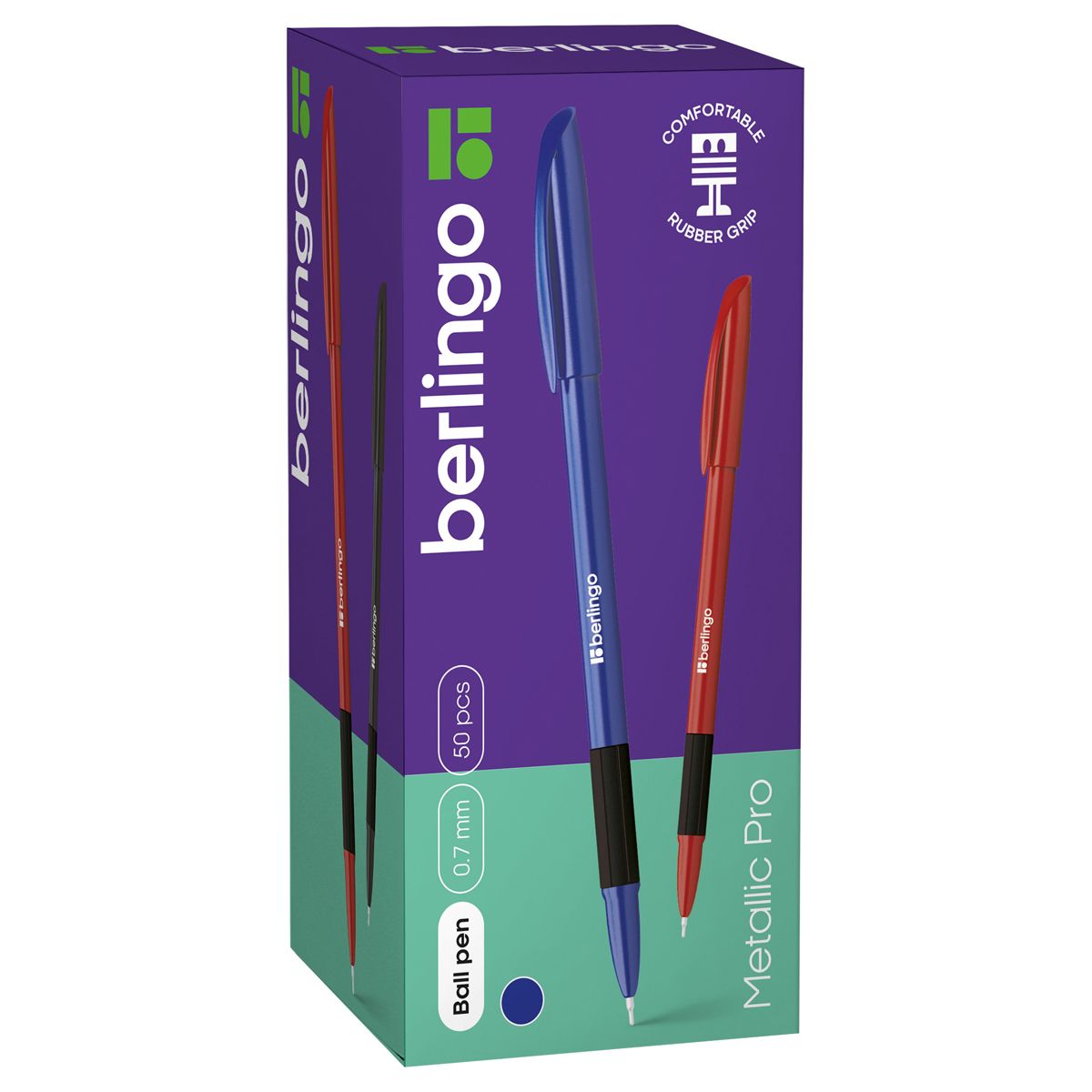 Ручка шариковая Berlingo "Metallic Pro" синяя, 0,7мм, грип