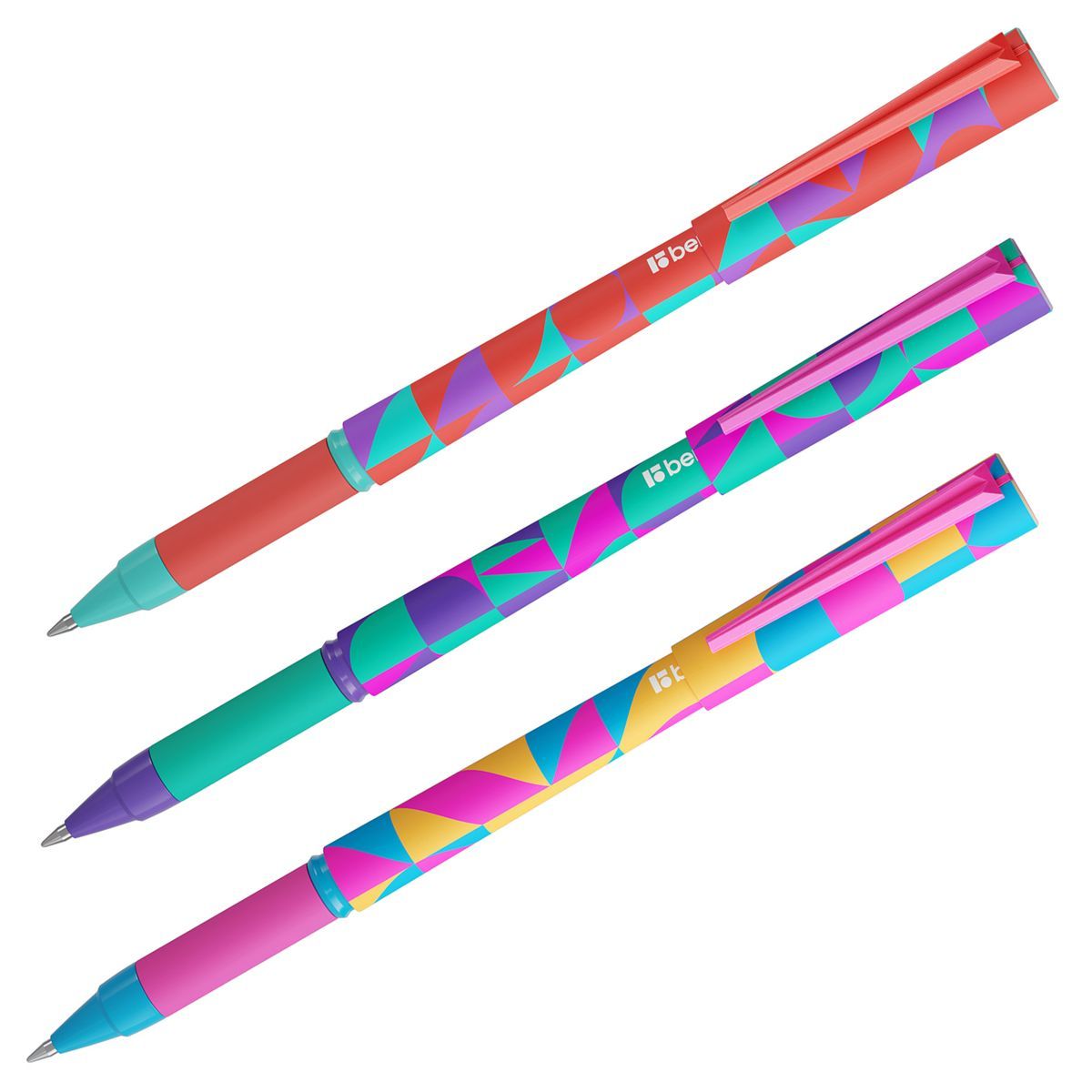 Ручка шариковая Berlingo "Neonometry" синяя, 0,7мм, грип, рисунок на корпусе, ассорти