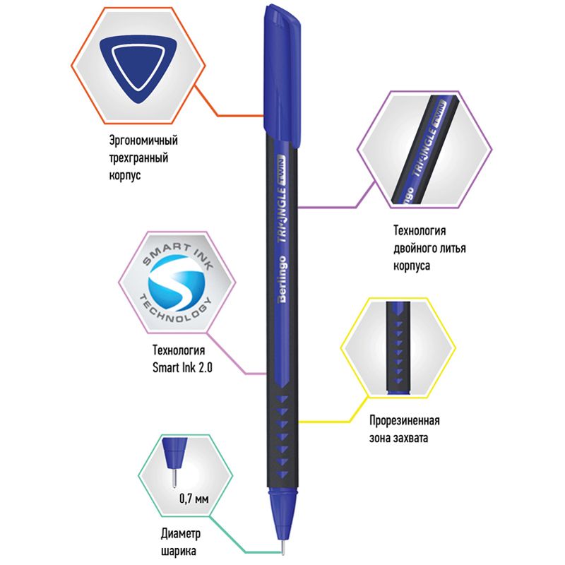 Ручка шариковая Berlingo "Triangle Twin" синяя, 0,7мм, игольчатый стержень