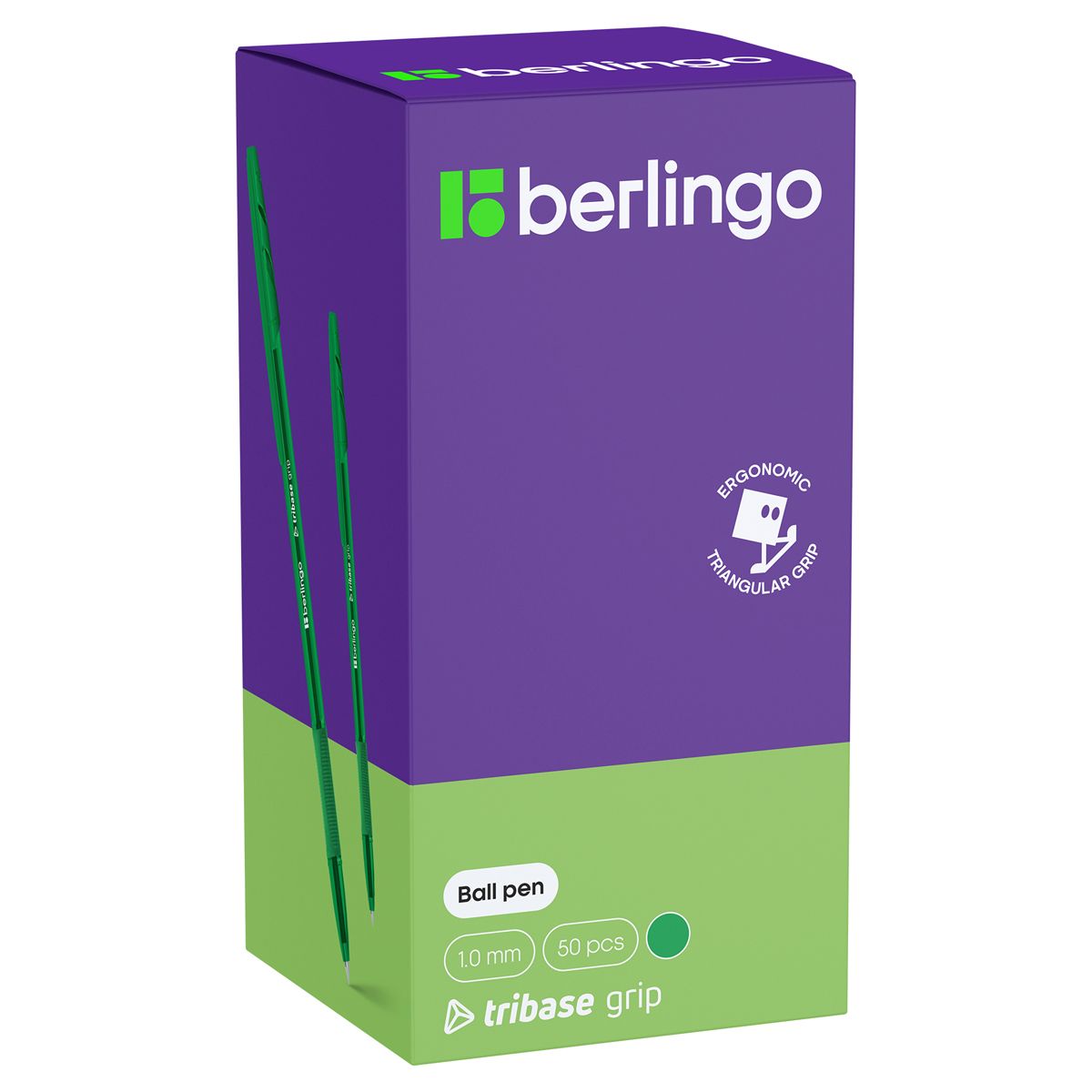 Ручка шариковая Berlingo "Tribase grip" зеленая, 1,0мм, грип