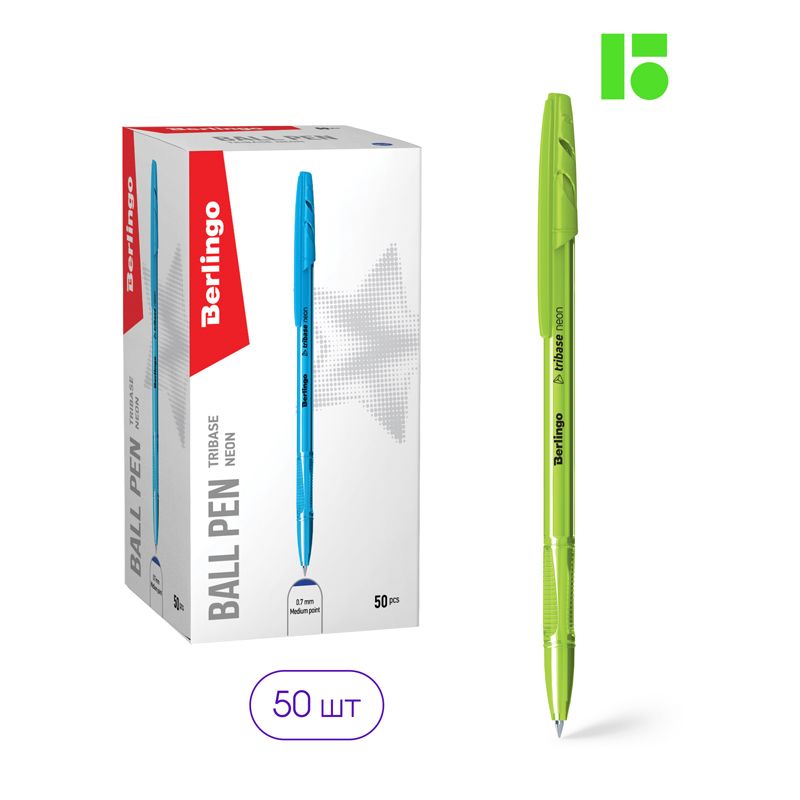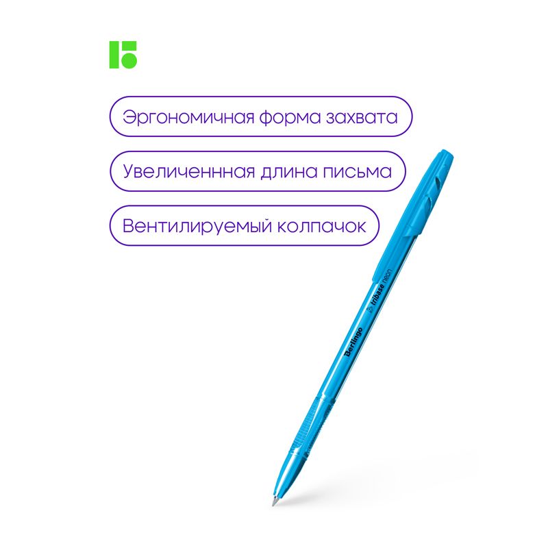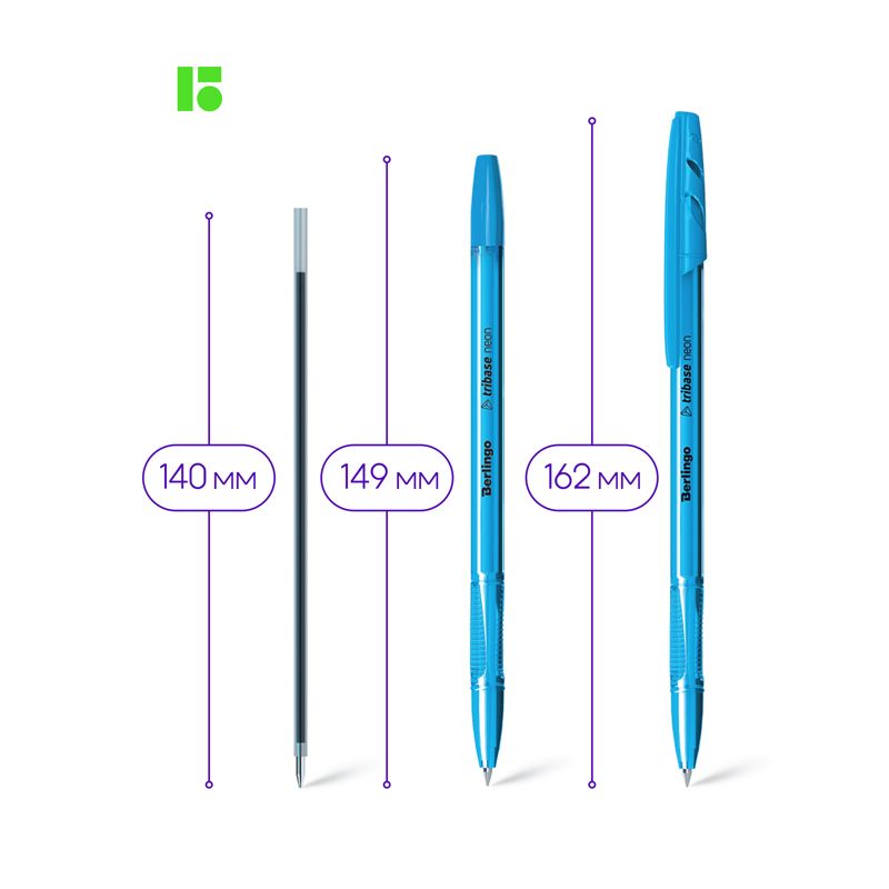 Ручка шариковая Berlingo "Tribase Neon" синяя, 0,7мм, корпус ассорти