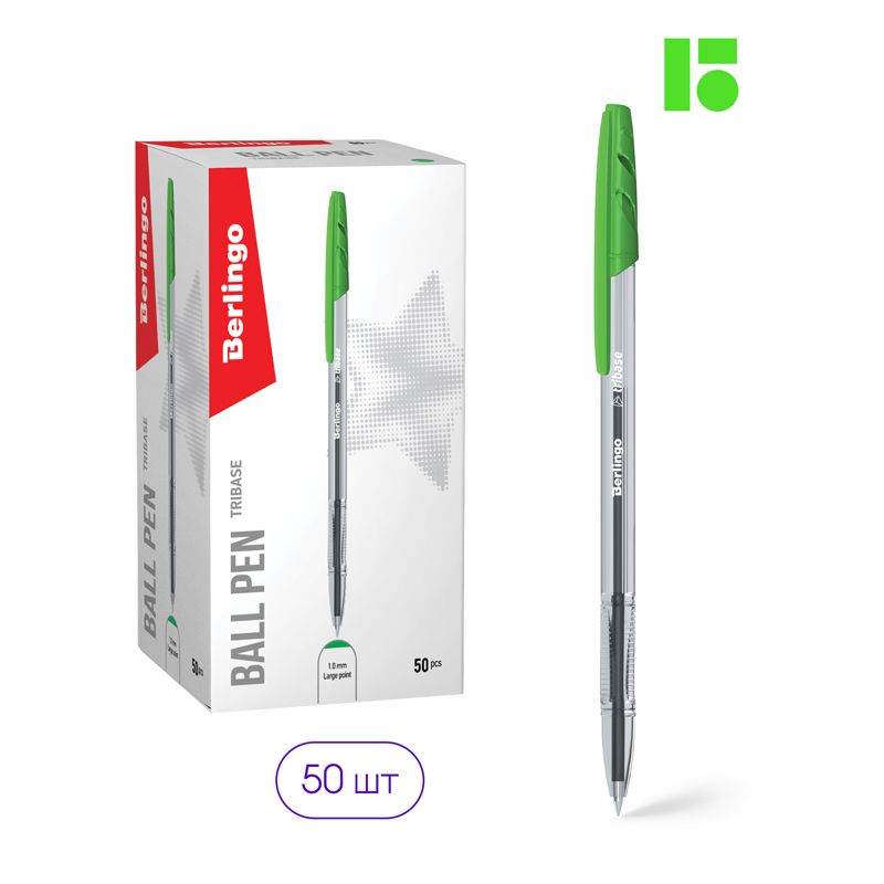 Ручка шариковая Berlingo "Tribase" зеленая, 1,0мм