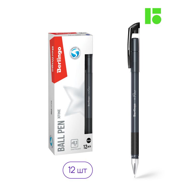 Ручка шариковая Berlingo "xFine" черная, 0,3мм, грип