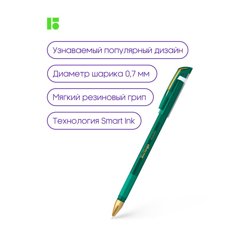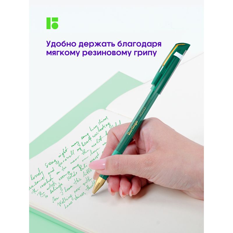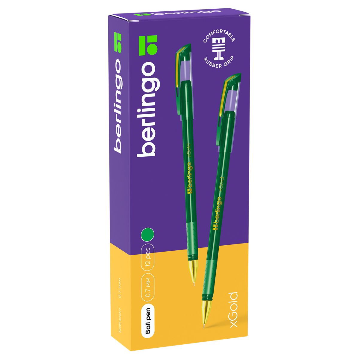 Ручка шариковая Berlingo "xGold" зеленая, 0,7мм, игольчатый стержень, грип