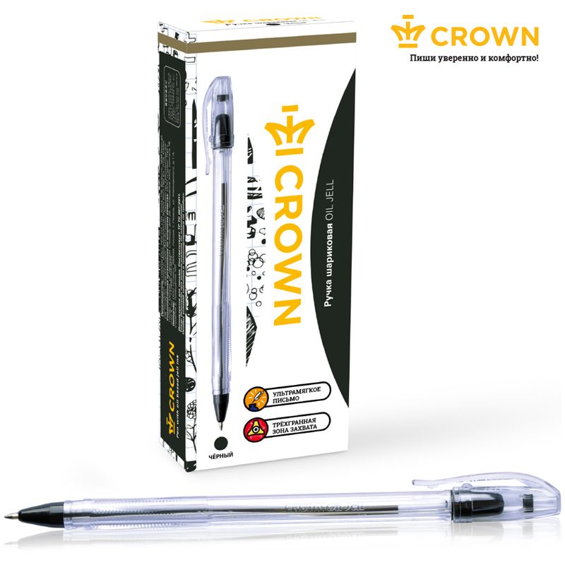 Ручка шариковая Crown "Oil Jell" черная, 0,7мм, штрих-код