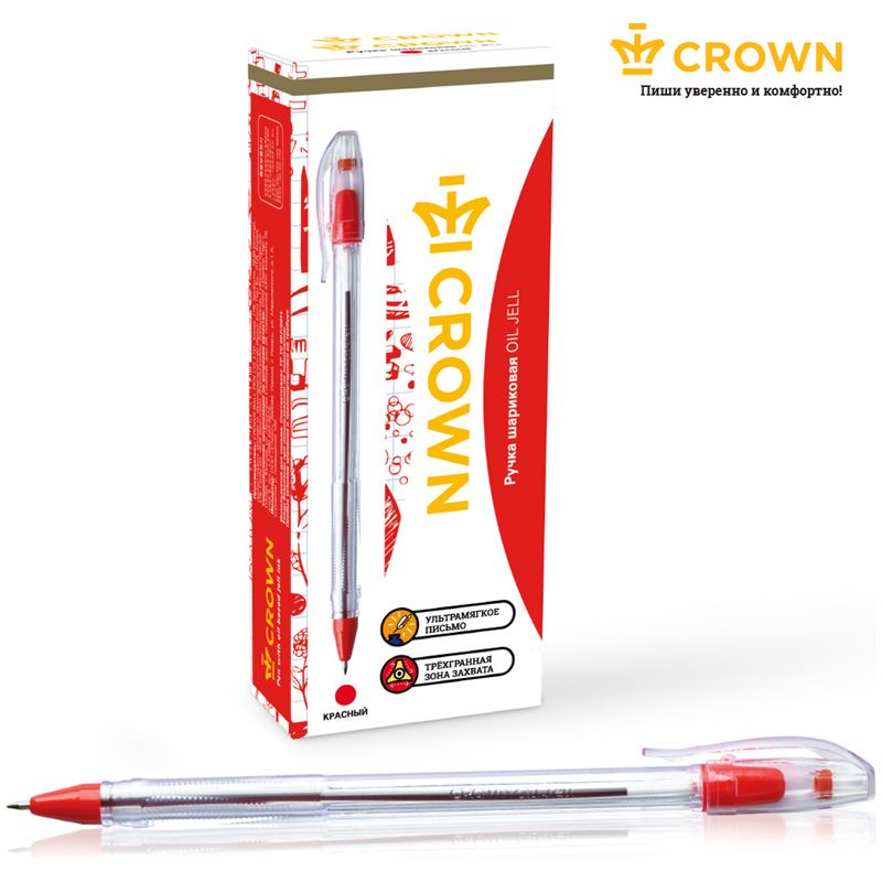 Ручка шариковая Crown "Oil Jell" красная, 0,7мм, штрих-код