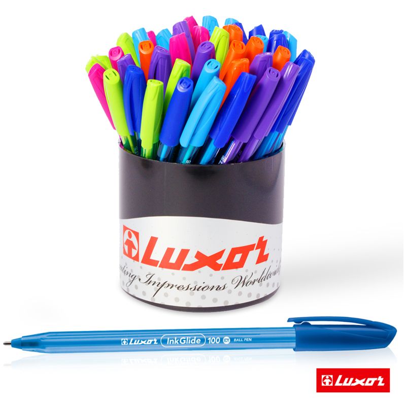 Ручка шариковая Luxor "InkGlide 100 Icy" синяя, 0,7мм, трехгран., корпус ассорти