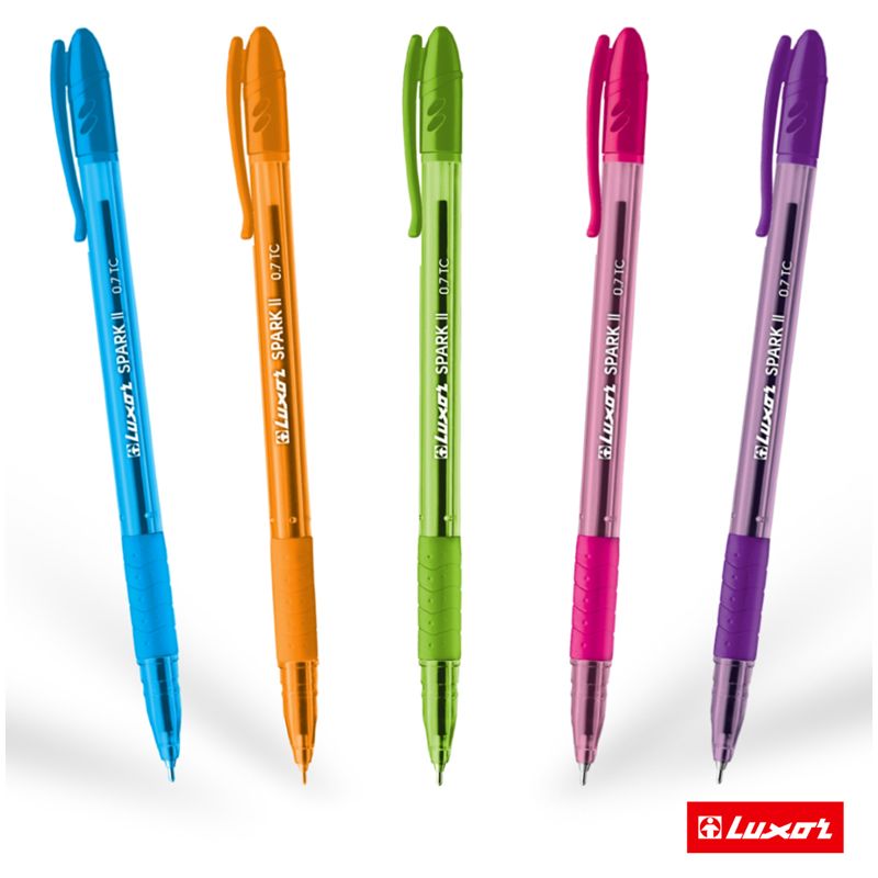 Ручка шариковая Luxor "Spark II" синяя, 0,7мм, грип, корпус ассорти