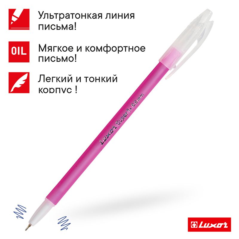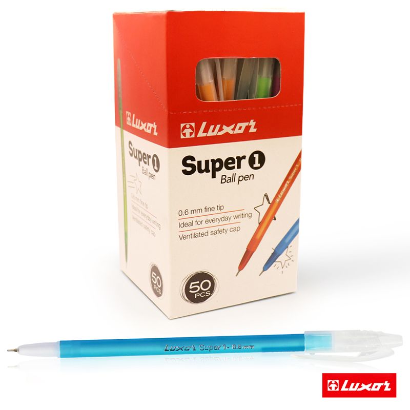 Ручка шариковая Luxor "Super 1" синяя, 0,6мм, корпус ассорти
