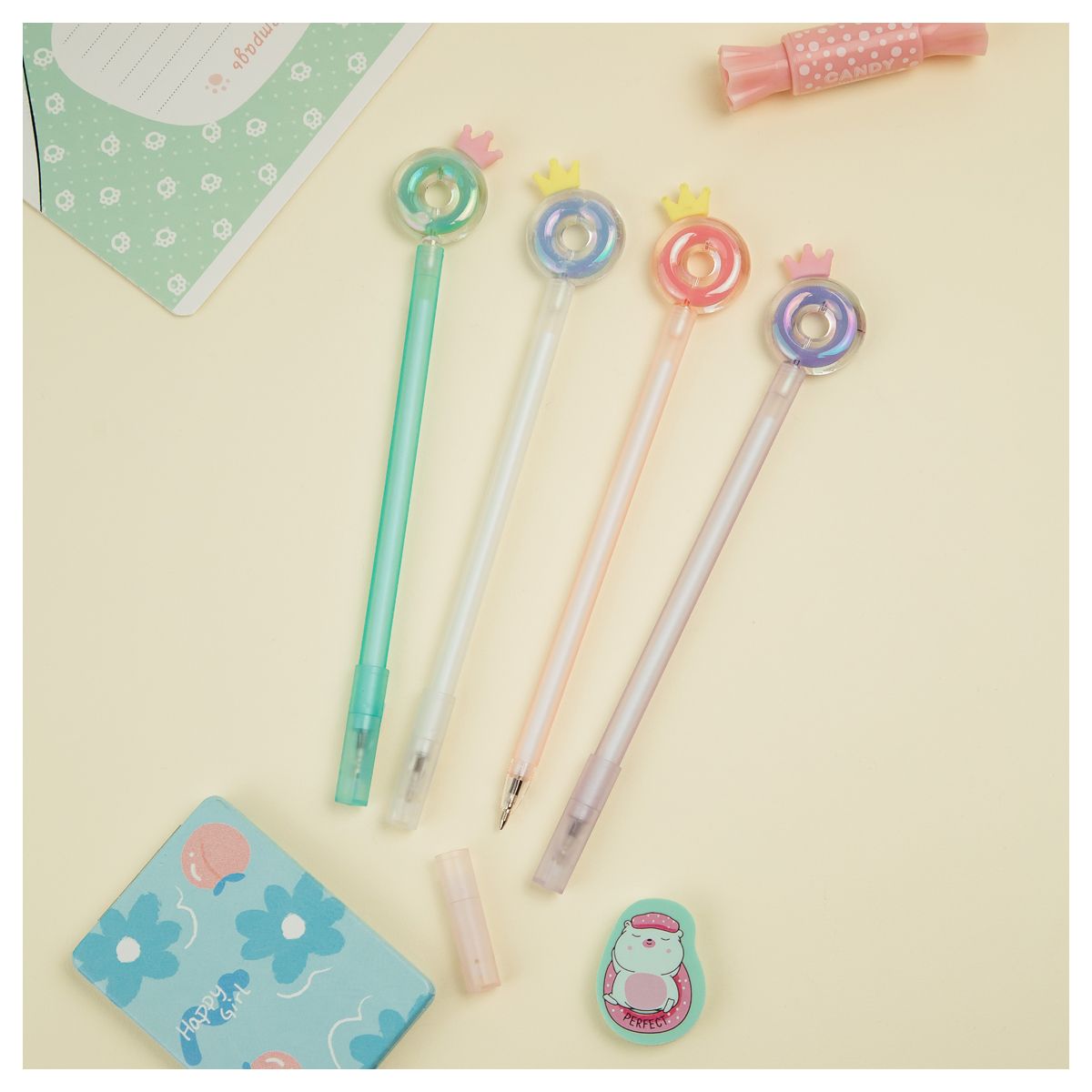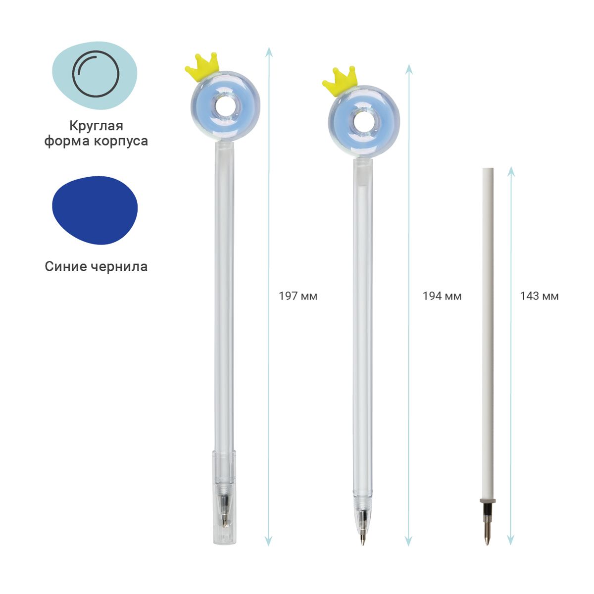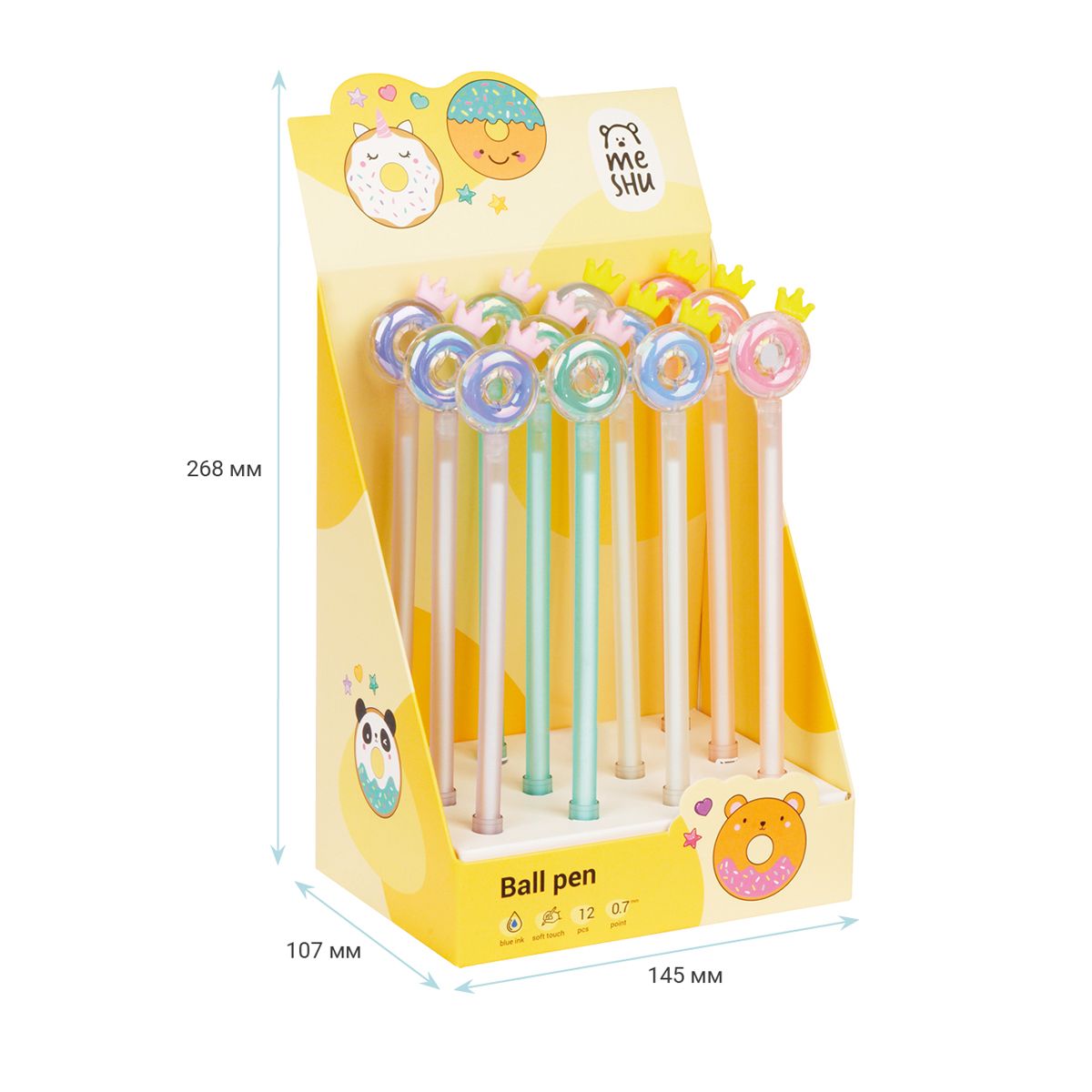 Ручка шариковая MESHU "Crown Donuts" синяя, 0,7мм, корпус ассорти, с топпером