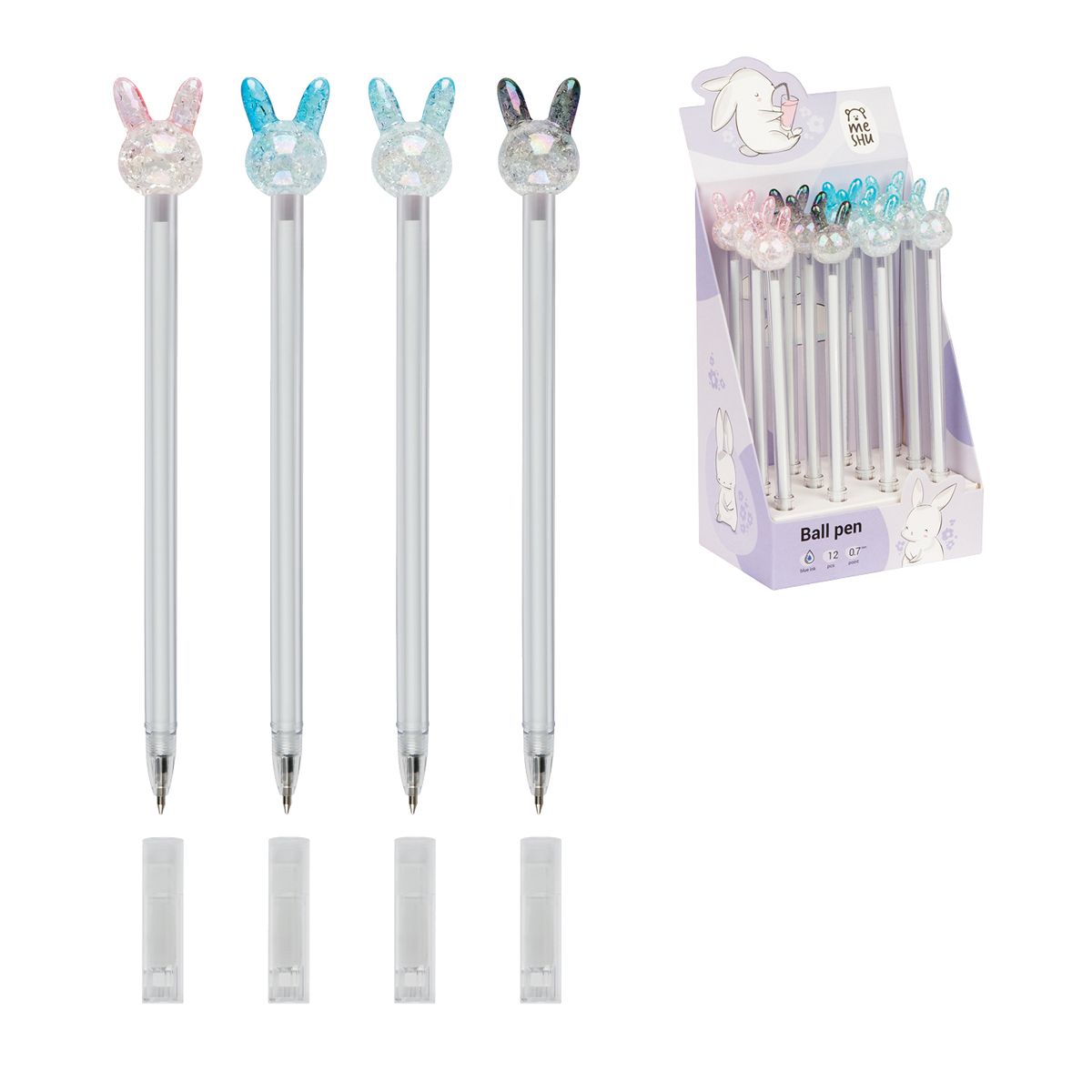 Ручка шариковая MESHU "Crystal Rabbit" синяя, 0,7мм, корпус ассорти, с топпером