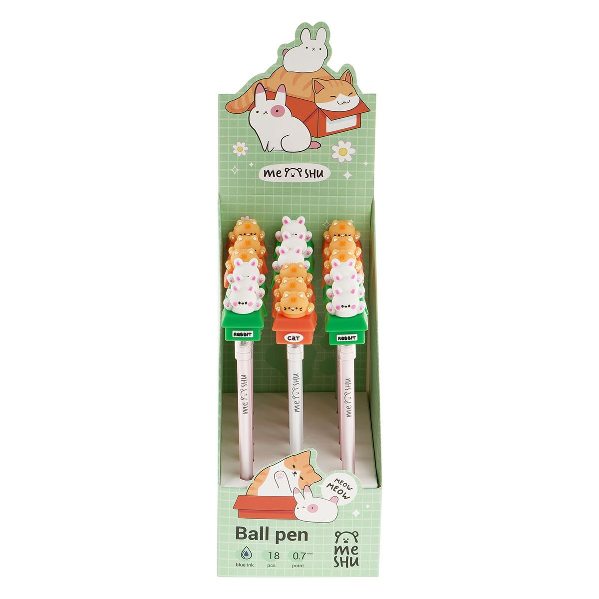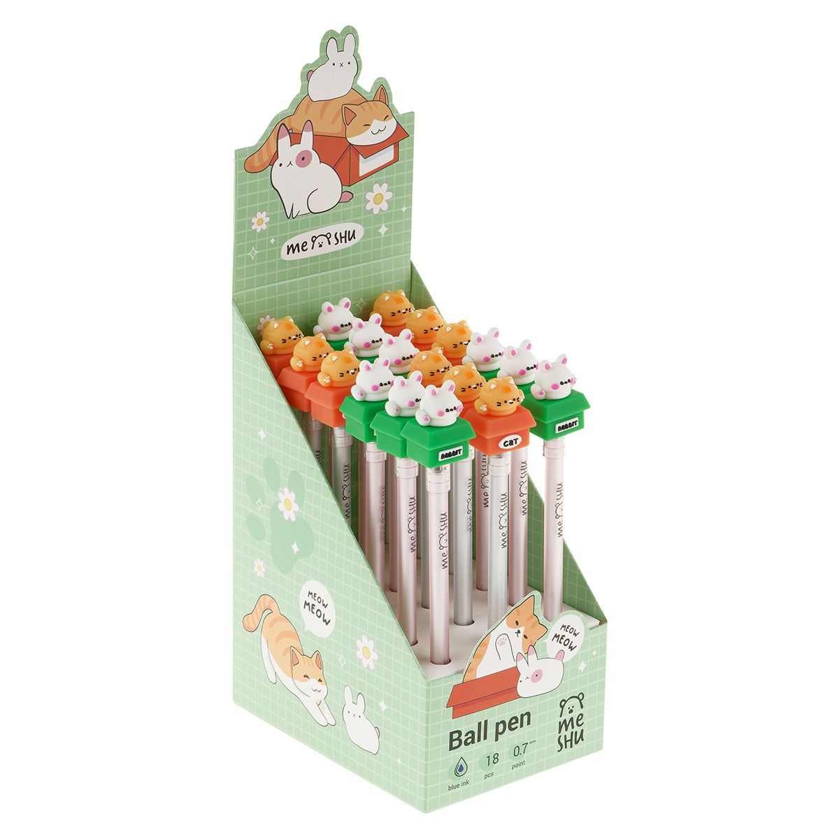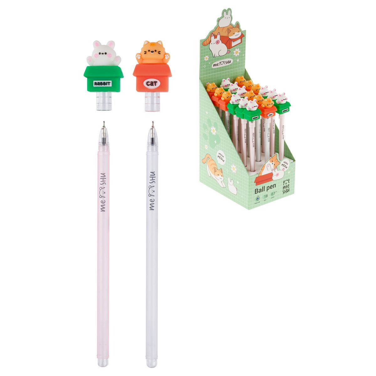 Ручка шариковая MESHU "Friends Box" синяя, 0,7мм, корпус ассорти