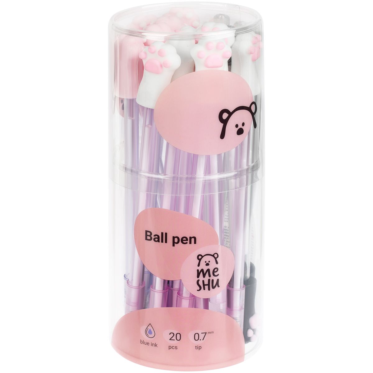 Ручка шариковая MESHU "Paws" синяя, 0,7мм, корпус ассорти