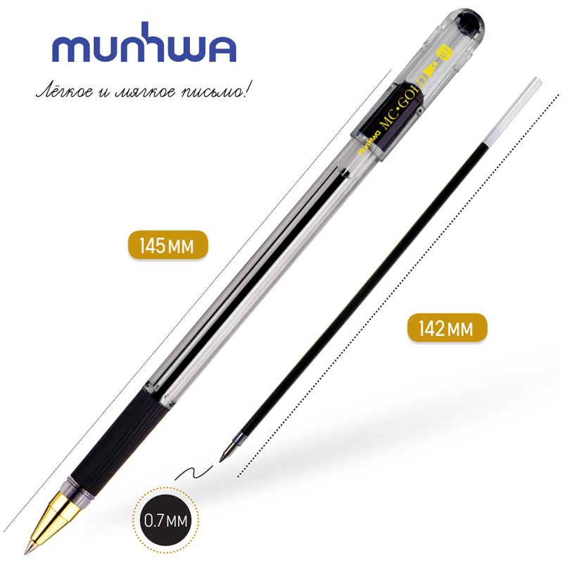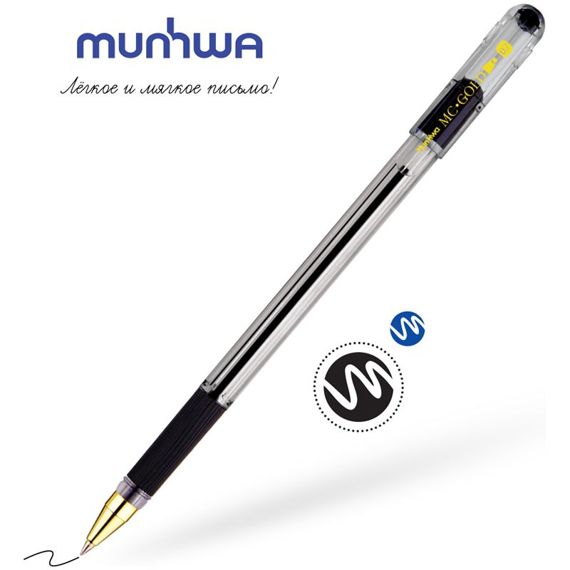 Ручка шариковая MunHwa "MC Gold" черная, 0,7мм, грип, штрих-код