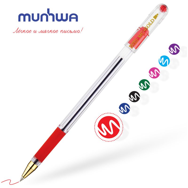 Ручка шариковая MunHwa "MC Gold" красная, 0,5мм, грип, штрих-код