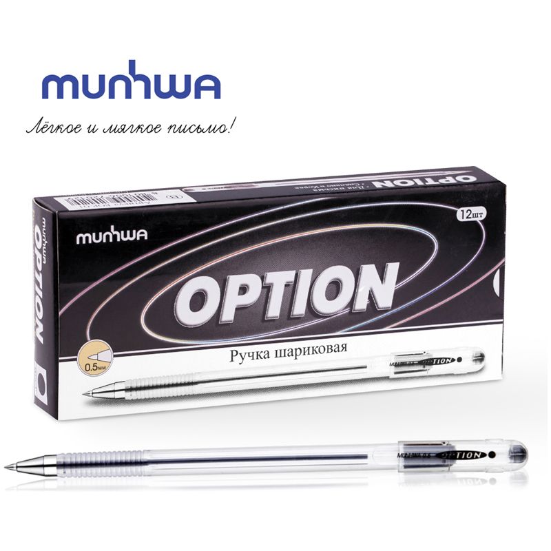 Ручка шариковая MunHwa "Option" черная, 0,5мм, штрих-код