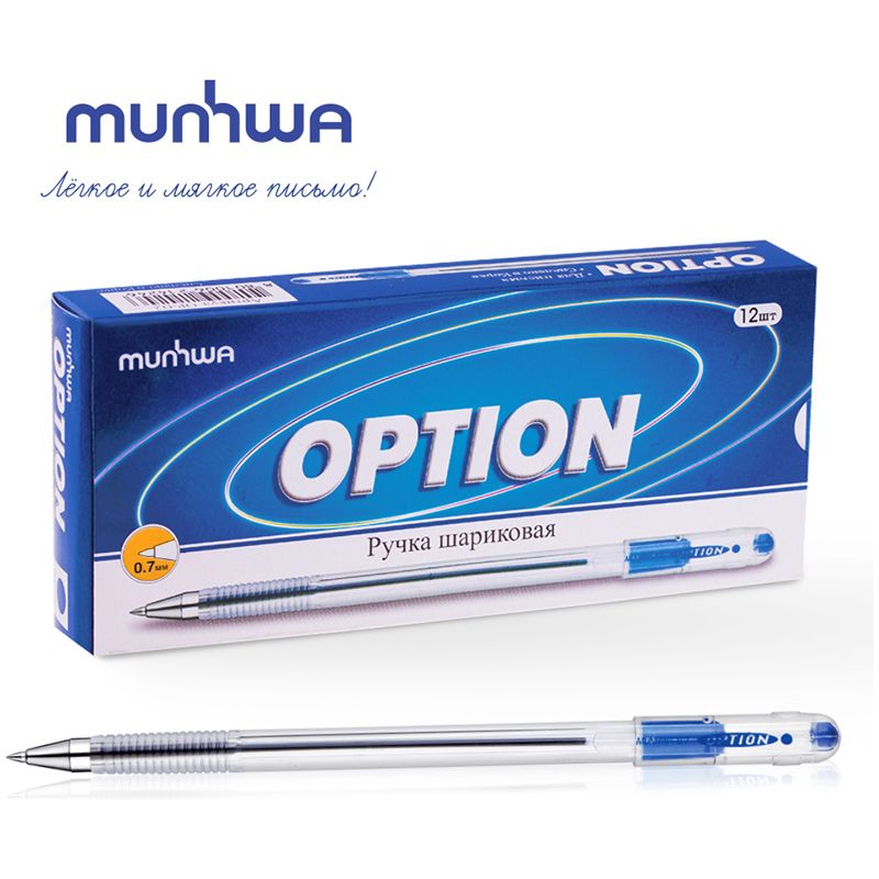 Ручка шариковая MunHwa "Option" синяя, 0,7мм, штрих-код